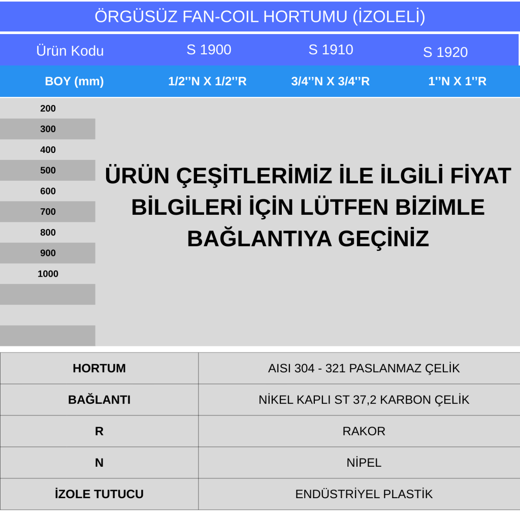 Kale Flex Kompansatör Örgüsüz Fan-Coil Hortumu (İzoleli), fan-coil ve tesisat bağlantılarında esneklik sağlamak, titreşim ve ısı kayıplarını azaltmak amacıyla tasarlanmıştır.